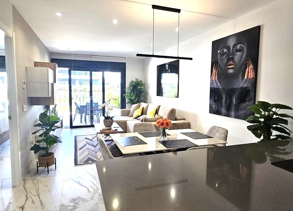 Se alquila precioso piso a estrenar en una de las urbanizaciones más nuevas y tranquilas de Torrevieja. Vivienda moderna, luminosa y totalmente equipada, ubicada en un entorno con lagunas, palmeras y amplias zonas ajardinadas.